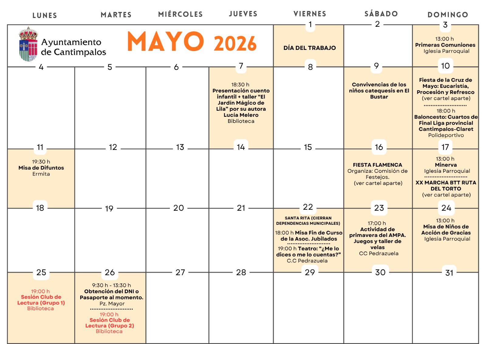 CALENDARIO ACTIVIDADES MAYO 2026