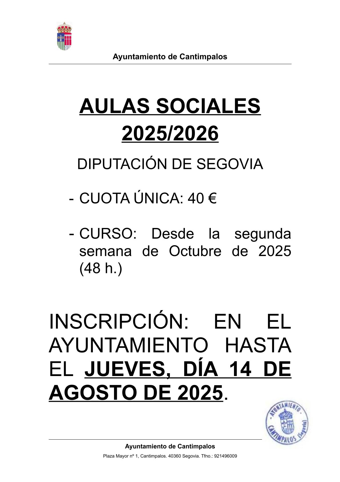 Abierto plazo de solicitud para AULAS SOCIALES 2025/2026 Abierto plazo de solicitud para AULAS SOCIALES 2025/2026